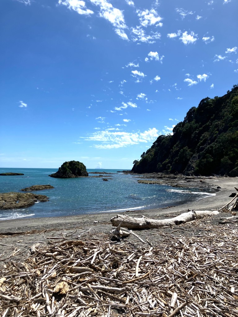 It was a long drive across Aotearoa’s North Island, called more evocatively Te Ika-a-Māui (‘the fish of Māui’) in Te Reo Māori. As we got deeper inland, we entered long tracts of land claimed by the ‘pine predicament’, an endless monocropping abomination gouged with huge greyish trenches where the trees had been cut down by the thousands.